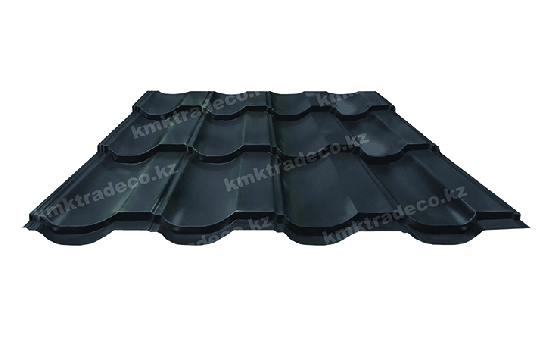Металлическая кровля имеет максимальное сходство с натуральной черепицей. Листы изготовлены из тонколистовой стали толщиной 0.45 мм с МАТТ (матовым) покрытием премиум-класса – придаёт поверхности кровли необычный матовый «бархатистый» вид. Цвет – RAL 7024 Графитовый серый. Высота профиля – 25+/-1 мм.