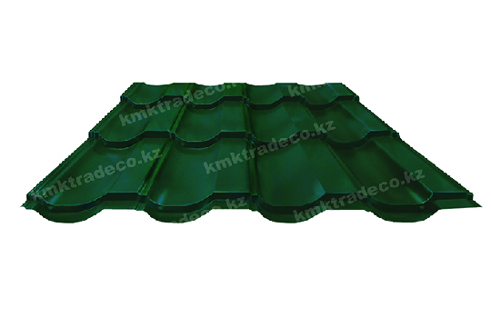 Металлическая кровля имеет максимальное сходство с натуральной черепицей. Листы изготовлены из тонколистовой стали толщиной 0.50 мм с МАТТ (матовым) покрытием премиум-класса – придаёт поверхности кровли необычный матовый «бархатистый» вид. Цвет – RAL 6005 Зеленый мох. Высота профиля – 25+/-1 мм.