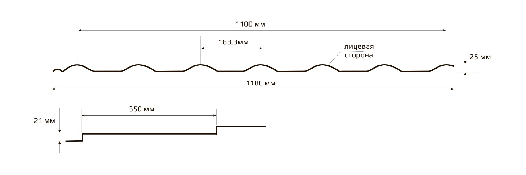 - Ширина листа общая 1180 мм
