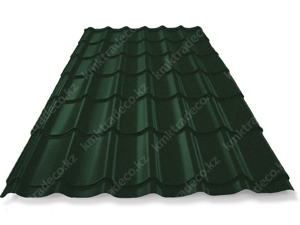 Металлическая кровля имеет максимальное сходство с натуральной черепицей. Листы изготовлены из тонколистовой стали толщиной 0.50 мм с МАТТ (матовым) покрытием премиум-класса – придаёт поверхности кровли необычный матовый «бархатистый» вид. Цвет – RAL 6007 Бутылочно-зеленый. Высота профиля – 25+/-1 мм.