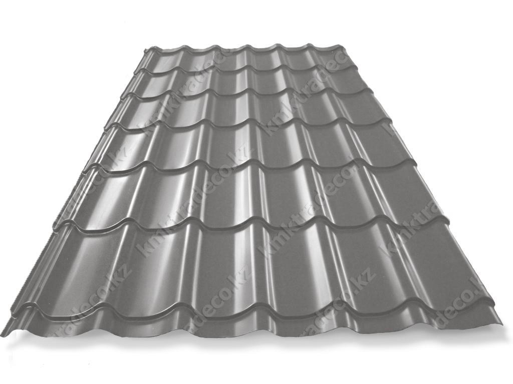 Металлочерепица Супермонтеррей – один из самых популярных видов данного кровельного материала. Металлическая кровля имеет максимальное сходство с натуральной черепицей. Листы изготовлены из тонколистовой стали толщиной 0.45 мм с полимерным защитным слоем. Цвет – RAL 7004 Сигнальный серый. Высота профиля – 25+/-1 мм.