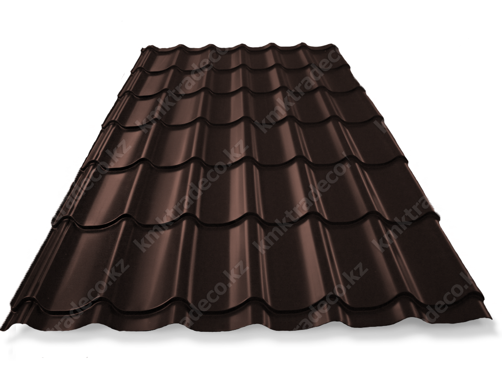 Металлочерепица Супермонтеррей – один из самых популярных видов данного кровельного материала. Металлическая кровля имеет максимальное сходство с натуральной черепицей. Листы изготовлены из тонколистовой стали толщиной 0.5 мм с полимерным защитным слоем. Цвет – RAL 8017 Шоколадно-коричневый. Высота профиля – 25+/-1 мм.