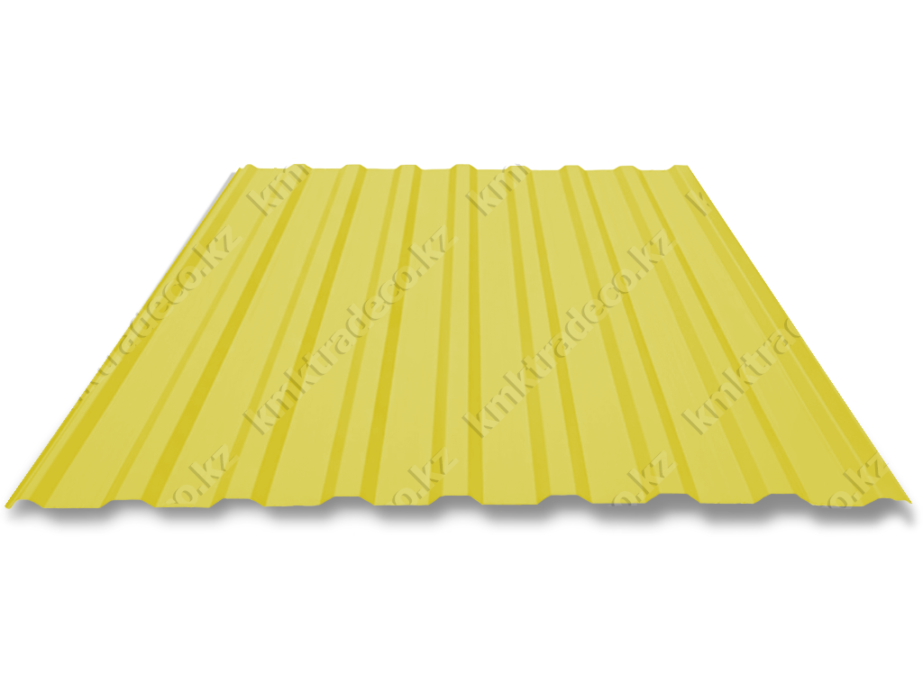 Профнастил НС-18х1150 - один из самых популярных материалов, используемых для изготовления заборов, стеновых облицовочных покрытий, перегородок быстровозводимых зданий. Цвет - 1018 Цинково-желтый.